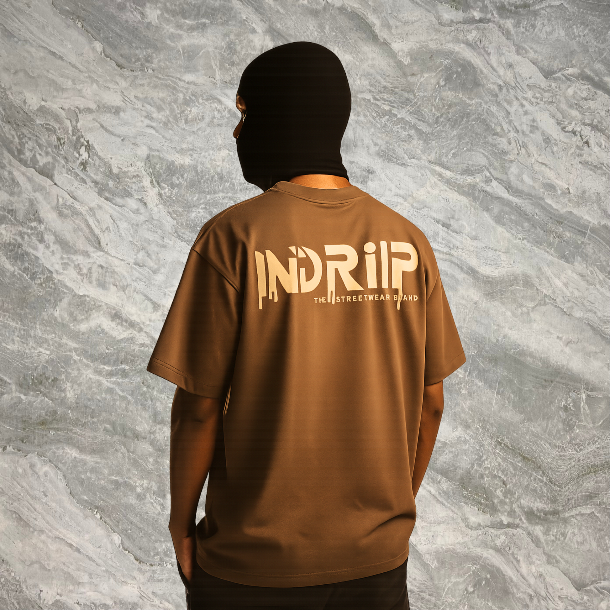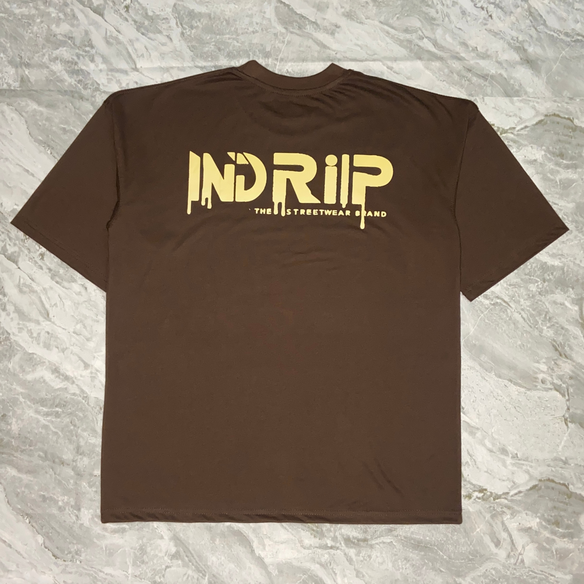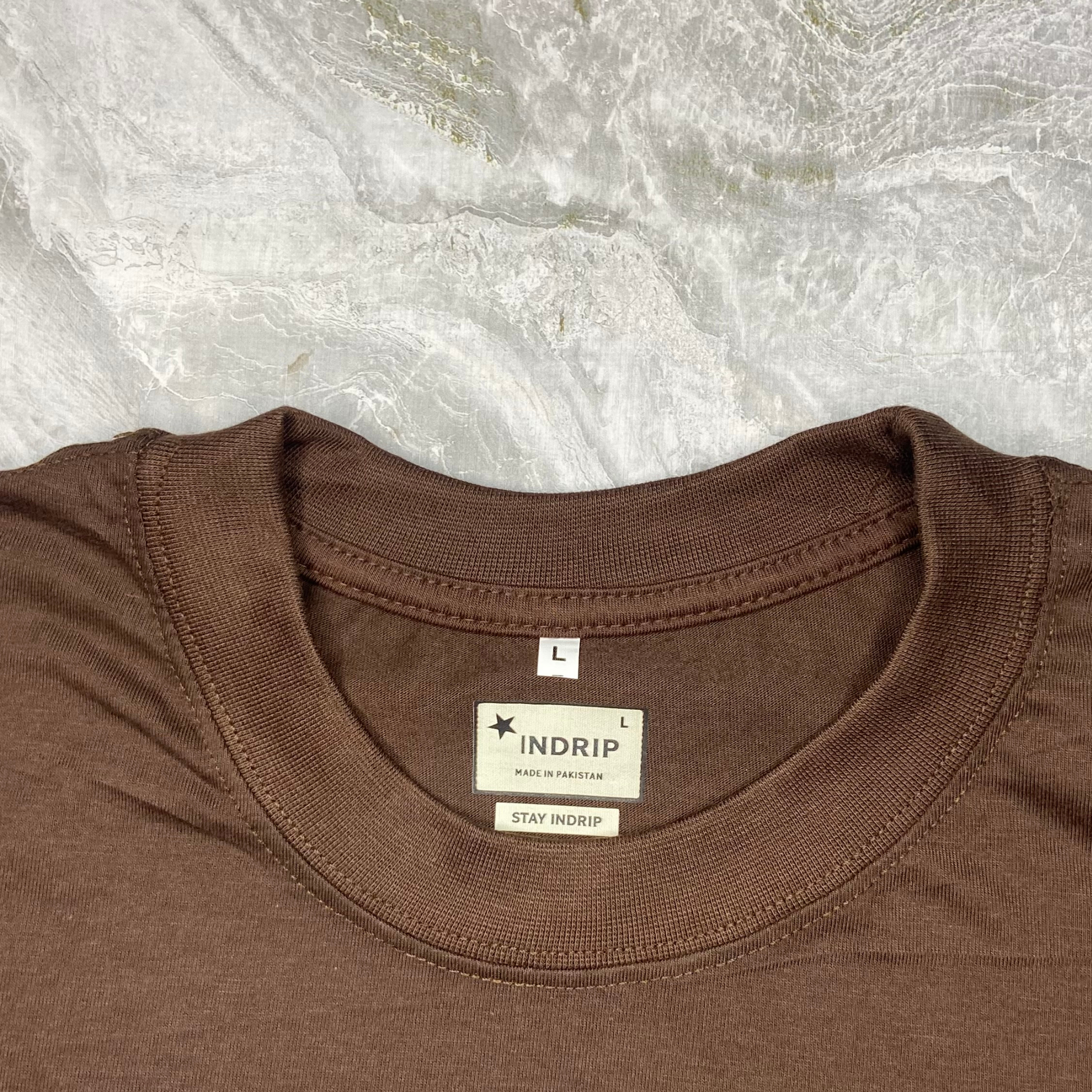 Oversized brown tee dipped in earth tones and dust.